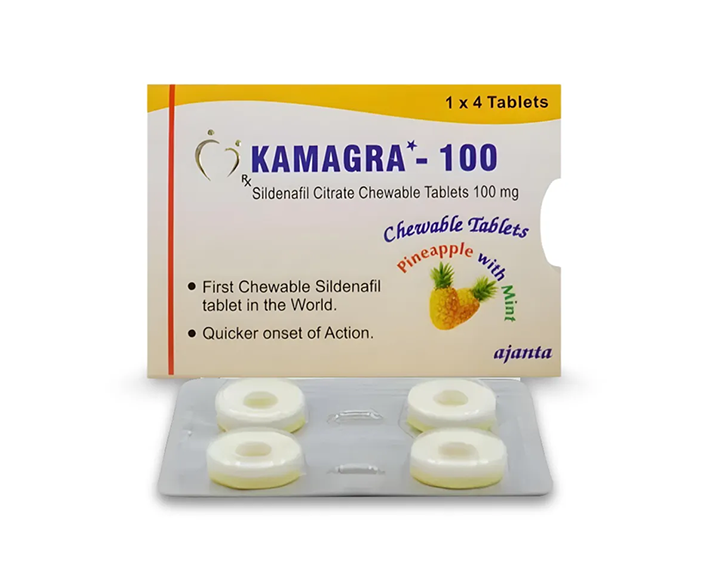 | Kamagra Chewable 100mg Tablets | 100mg | Chewable Tablet | A convenient alternative to regular tablets, dissolving quickly in the mouth for faster absorption. |